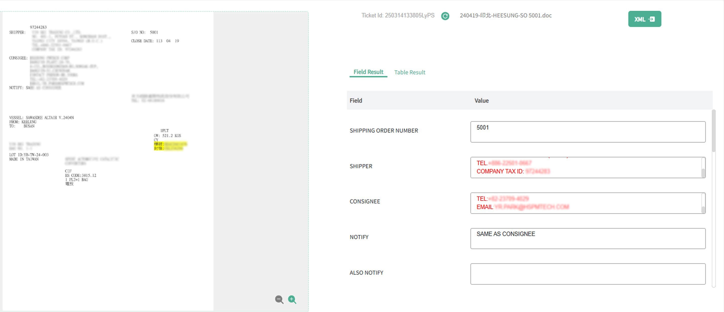 Recognition Coverage: Shipping invoices (import/export) from 50 companies